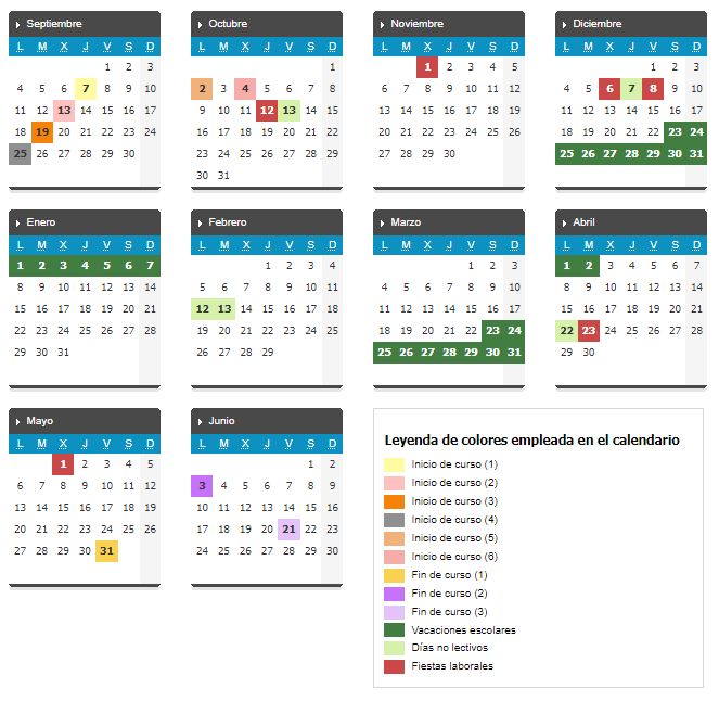 - Días 23, 24, 25, 26, 27, 28, 29, 30, 31: Vacaciones de Navidad